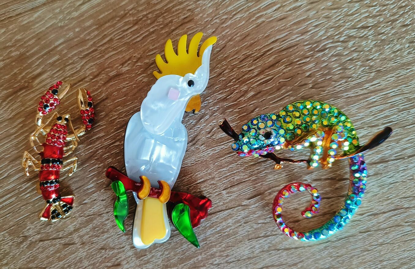 Komplet 3 szt. eleganckie broszki, nowe. Idealna do dodania wyjątkowego akcentu do Twojej garderoby. Dodaj odrobinę klasy i stylu do swojego stroju dzięki tej unikalnej broszce. Idealne na plecak, torbę, ubranie, czapkę. Cały zestaw 30 zł, wysłanie 16 zł. Można odebrać osobiście, mogę wysłać. Można kupić na sztuki.Beata