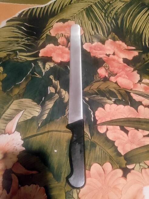 Nóż do ciasta Gerlach z bakelitową rączką , długość 42,5 cm, vintage PRL. Solidne, używane narzędzie kuchenne, ...
