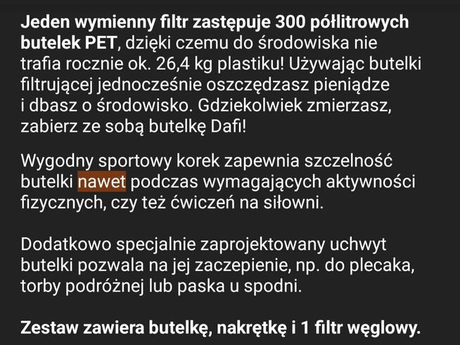 Butelka nowa z filtrem kokosowym Dafi 500ml, aplikacja MyDafi Mogę wysłać, lub można odebrać osobiście.