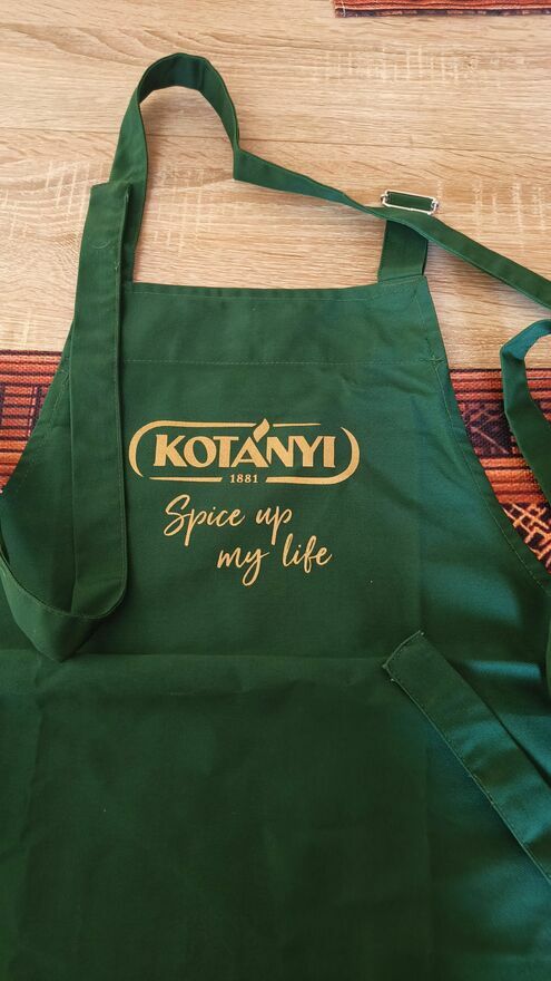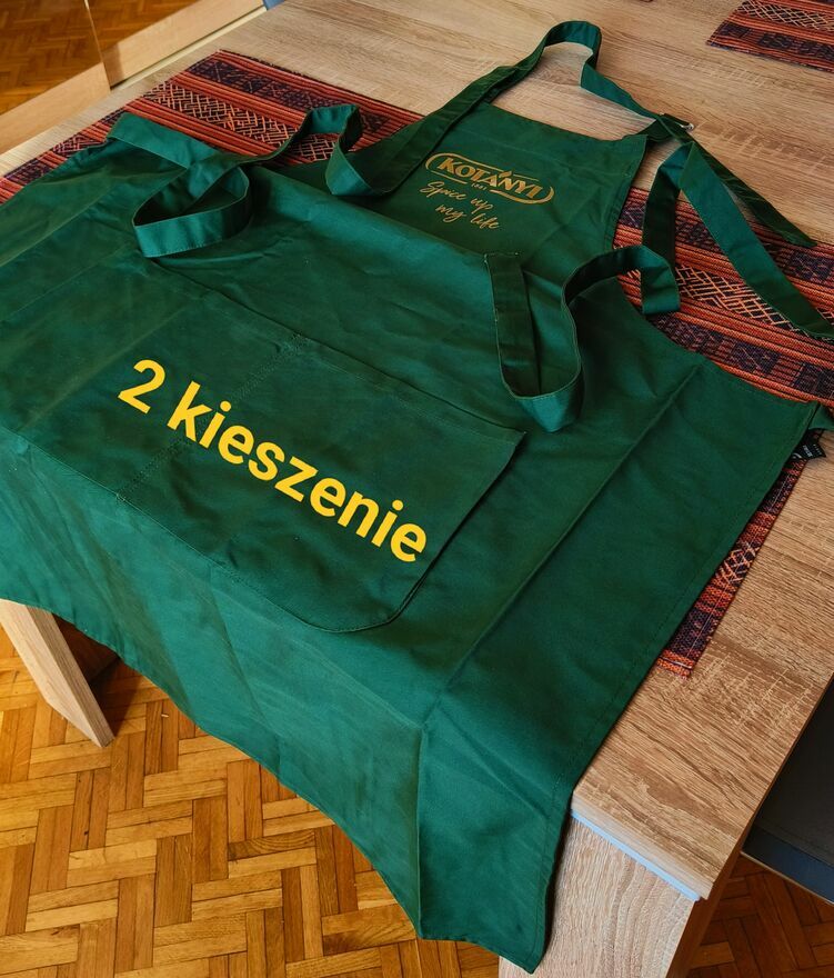 Nowy, zielony fartuch kuchenny marki Kotányi z napisem 'Spice up my life'. Fartuch wykonany jest z trwałego materiału, bawełna gruba, idealny do użytku w kuchni lub podczas gotowania. Praktyczny i funkcjonalny dodatek dla miłośników sztuki kulinarnej. Posiada bardzo duże 2 kieszenie. Mogę wysłać tradycyjnie poczta polska lub można odebrać osobiście.Beata