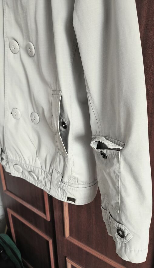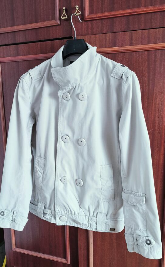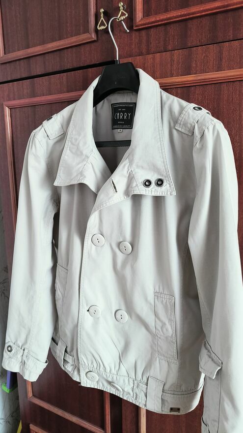 Kurtka wiatrówka w rozmiarze XL, w kolorze jasnym siwym. Używana, ale w dobrym stanie. Doskonała ochrona przed wiatrem w chłodniejsze dni. Kieszeń wew. zapinana kieszeń na rękawie, dwie kieszenie zew. Reg. nawiewy na karku, napy do reg. obwodu kurtki na dole, zapinana na guziki i na napy pod szyją. Uwaga, napis na kurtce rozmiar M, lecz w praktyce jest to rozmiar XL, bardzo długie rękawy, podszewka. Firma Carry. Można odebrać osobiście, mogę wysłać przez Pocztę Polską.Beata