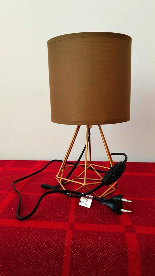 Nowoczesna lampa w kolorze brązowym. Podstawa w geometrycznym, złotym wzorze. Lampa jest nowa i gotowa do użycia. Można odebrać osobiście, mogę wysłać przez Pocztę Polską.Sprawdź zainteresowanie tym ogłoszeniem