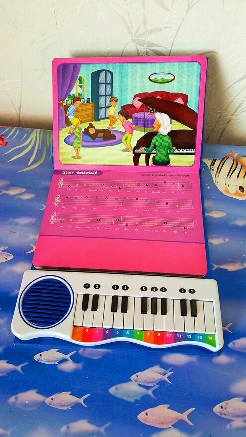 Książka z nutami dla dzieci, plus pianino na baterię ( baterii brak w zestawie), nauka grania tych 7 łatwych piosenek, wiek maluchy. Nowe lecz z dawnych lat, kupujesz na własne ryzyko, bez zwrotów. Można odebrać osobiście, mogę wysłać przez Pocztę Polską.Beata
