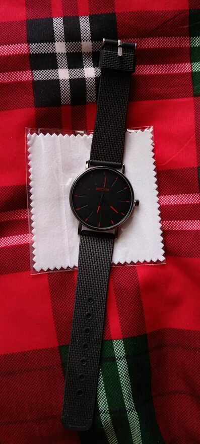 Czarny zegarek w stanie nowym. Idealny dodatek do codziennych stylizacji. Zegarek, szkło 3,8 cm , pasek czarny, miły gumowany, tarcza czarna z czerwonymi elementami. Brak gwarancji, wygrałam go w konkursie. Aby zrobić start ustaw godzinę i wduś pokrętło boczne. Jak nie używasz wysuń pokrętło boczne, będzie stan ,,oszczędzania baterii, zegarek zrobi stop". Mogę wysłać, można odebrać osobiście. Brak zwrotów. Wysyłam tylko przez poczta polska.Beata
